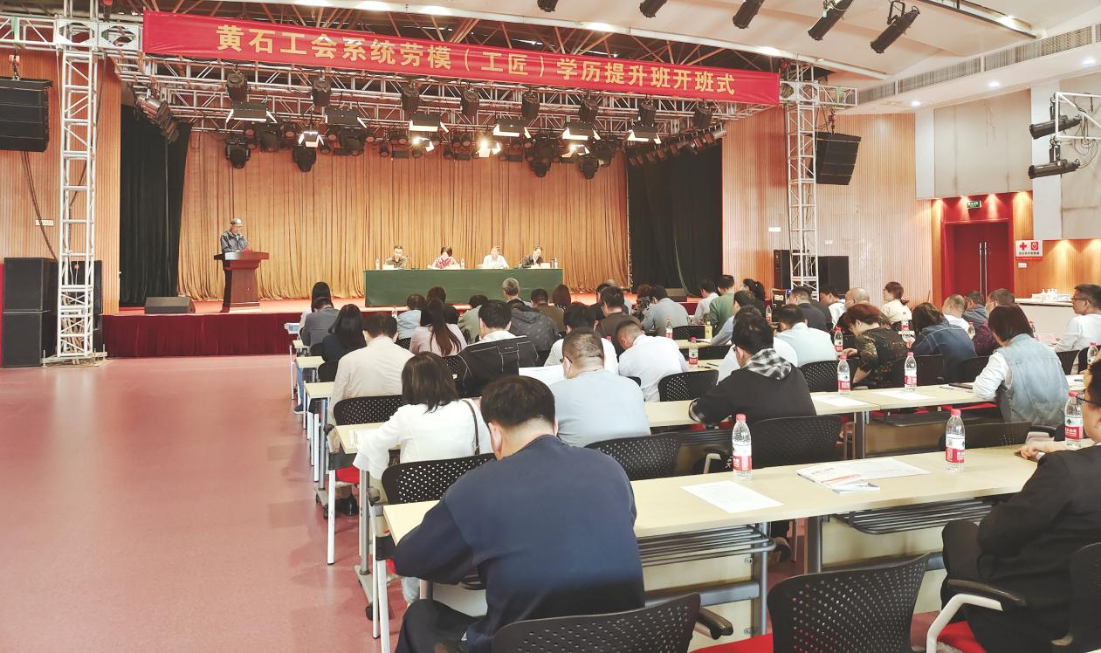 本网讯(通讯员 雒盼 文/图)5月12日上午,黄石广播电视大学联合黄石市工人文化宫,在工人文化宫四楼多功能厅举行首届2023年春季黄石广播电视大学“劳模工匠班”新生开学典礼。黄石广播电视大学党总支书记李莉、董事长刘胜民、黄石市工人文化宫党总支书记、主任张文高、总支副书记、副主任李峰等出席,公司2023级春季“劳模工匠班”新生以及电大业务人员、班主任、黄石工人文化宫职工等70余人参加了典礼大会。大会由黄石市工人文化宫党总支副书记、副主任李峰主持。