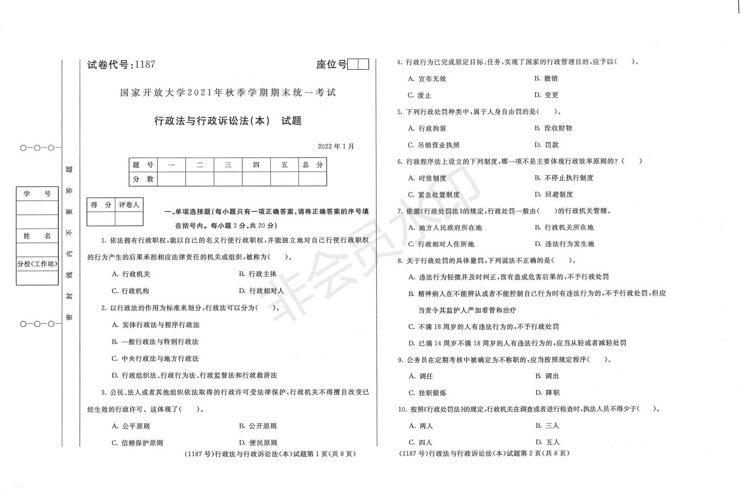 202201-1187-行政法与行政诉讼法