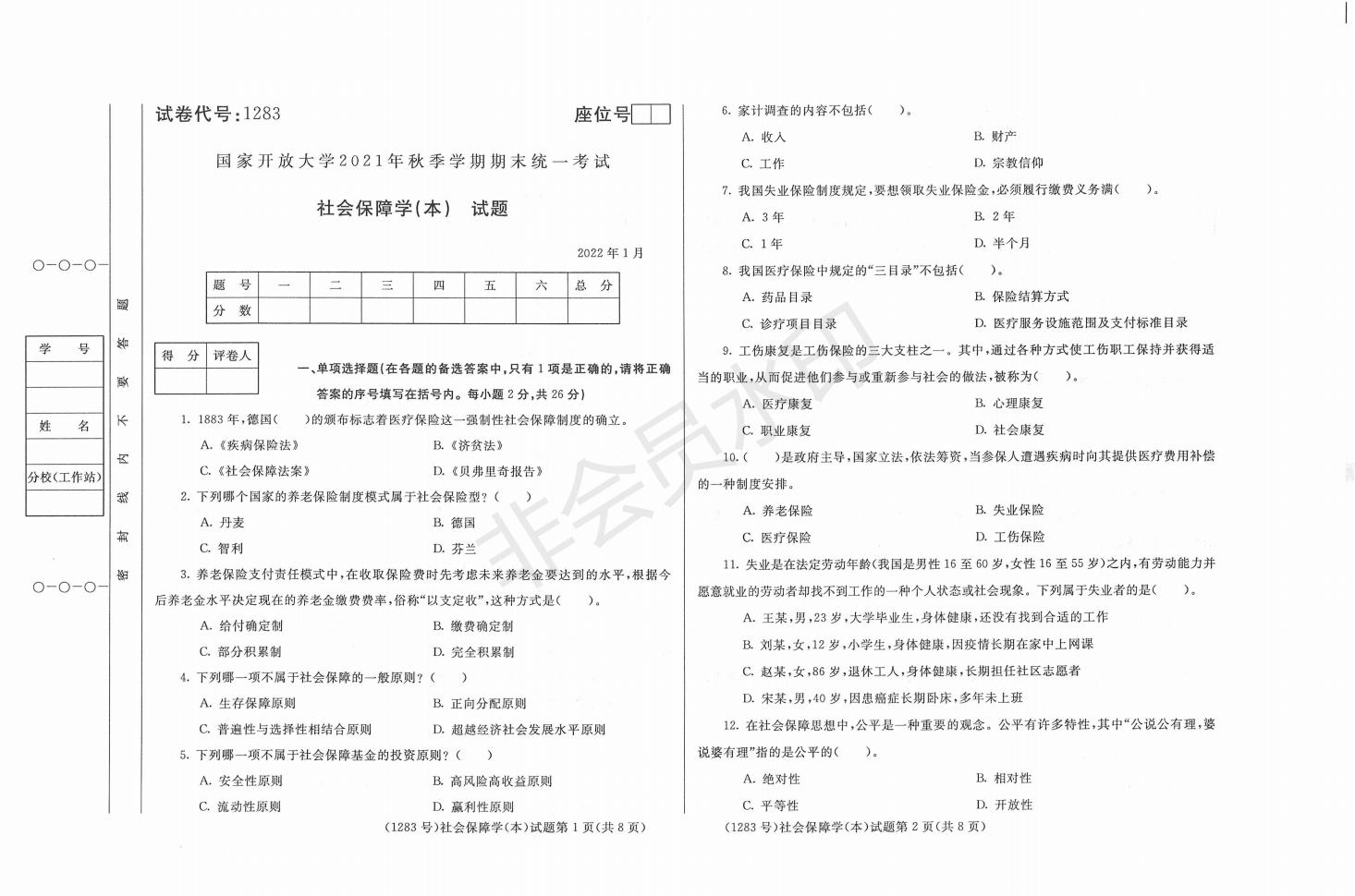202201-1283-社会保障学(本)