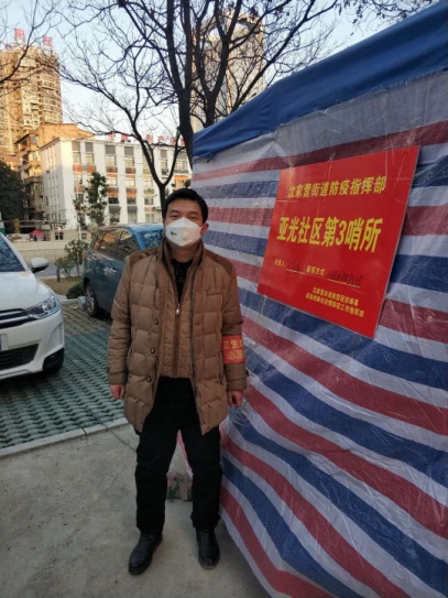 陈坚经理,年近六旬,主动报到参加所在湖滨路社区三号哨所疫情防控值守,并义务为小区居民提供防控期间日常生活物品购置的送货上门服务工作,是目前参加社区值守与义务服务者中年龄最长者。值守哨所晚上无电、无取暖设备,他自己想方设法自费购买了60余米电线、灯泡和插线板,解决了值守哨所夜间照明与取暖问题。