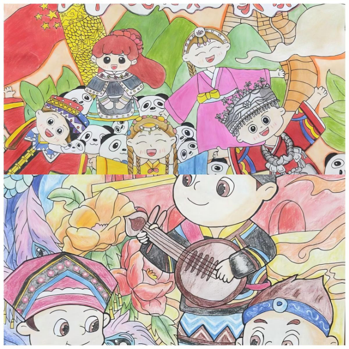 生动形象的绘画作品展现出“中华民族一家亲”的价值理念,我们不仅能够欣赏到中国56个民族文化的美,更能感受到中华民族大团结的力量与和谐共生的美好愿景。