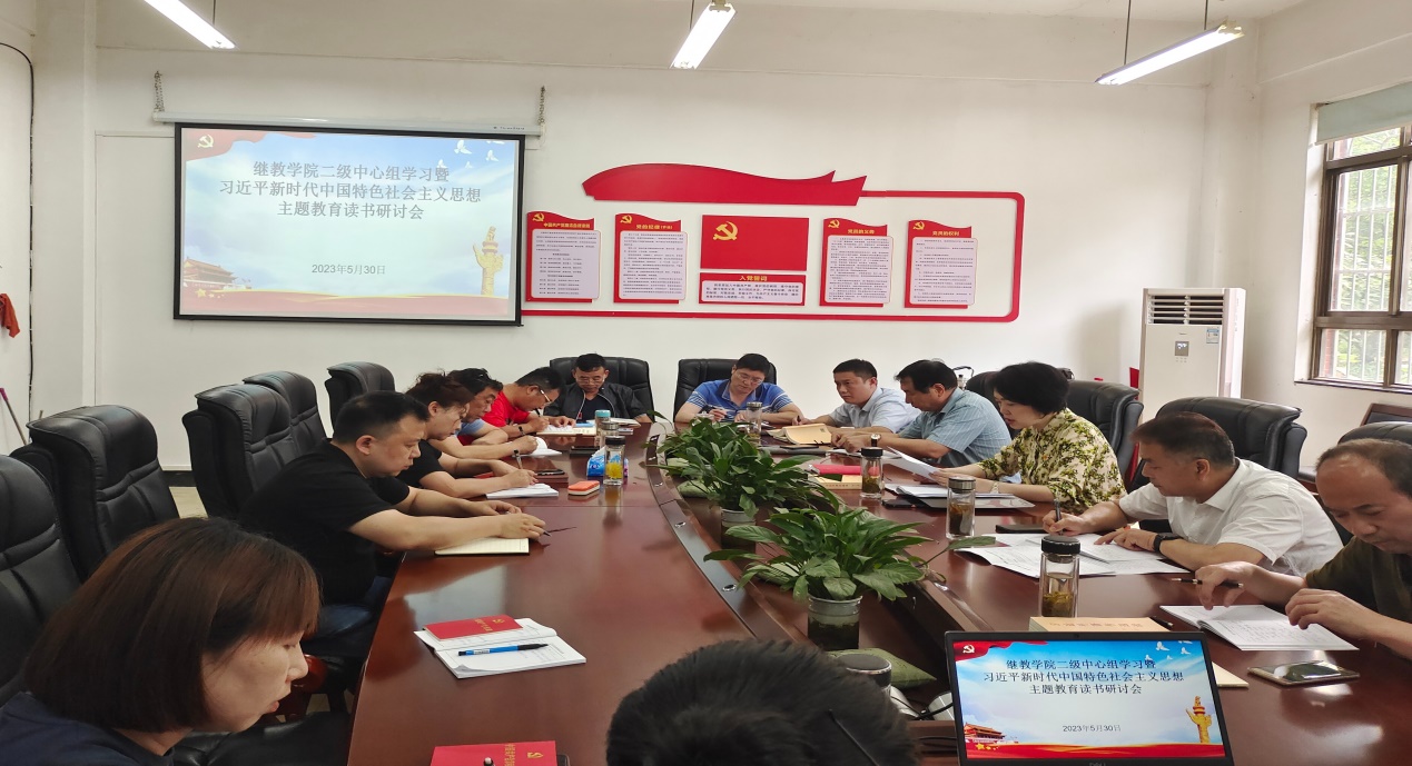5月30日下午,继续教育教公司、自考办公室、黄石广播电视大学(以下简称继教公司)党总支部在X2—101召开二级中心组学习暨习近平新时代中国特色社会主义思想主题教育读书研讨会,公司领导、各部门负责人及全公司党员参会,会议由党总支书记李莉主持。